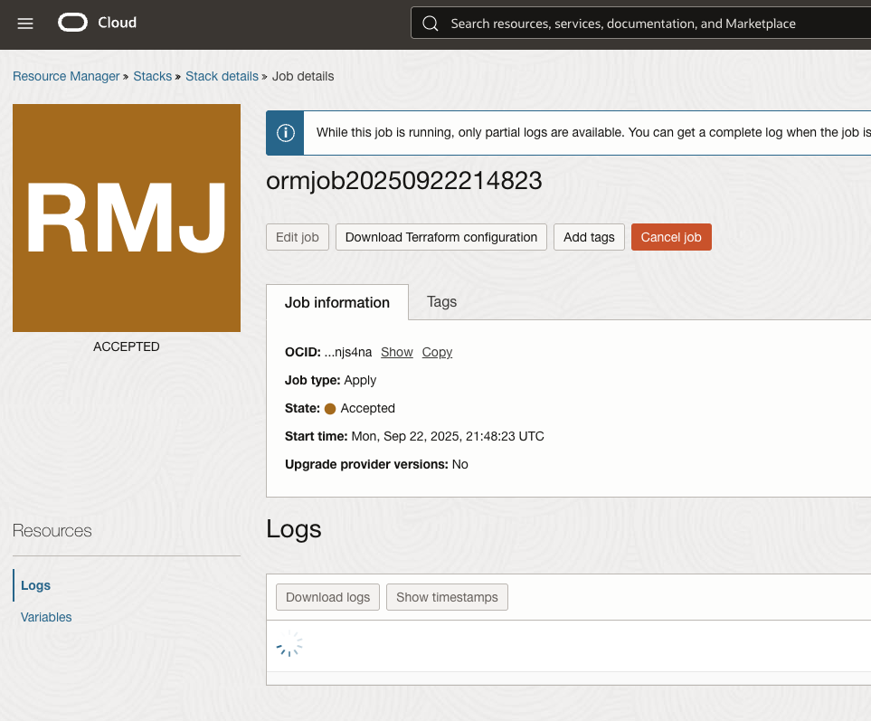 After a few minutes it should turn green and you can download the Terraform configuration which may become useful later: